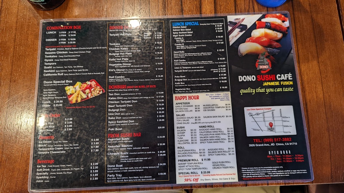 So, the next time you're in Chino and longing for some mouthwatering sushi, look no further than Dono Sushi Cafe. With its extensive menu, friendly service, and a cozy atmosphere that makes every guest feel like family, it’s more than just a meal—it's a celebration of flavors and memories waiting to be made.