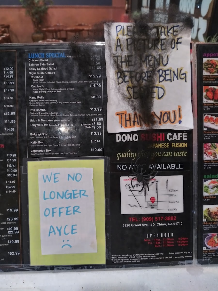As you step inside, the friendly staff greets you with genuine smiles, making you feel right at home. The inviting ambiance buzzes with excitement as patrons gather to enjoy a delightful culinary journey. Dono Sushi Cafe offers both an All-You-Can-Eat (AYCE) option and a thoughtfully curated a la carte menu, ensuring that there's something for everyone, whether you're a sushi aficionado or a newcomer to the cuisine.