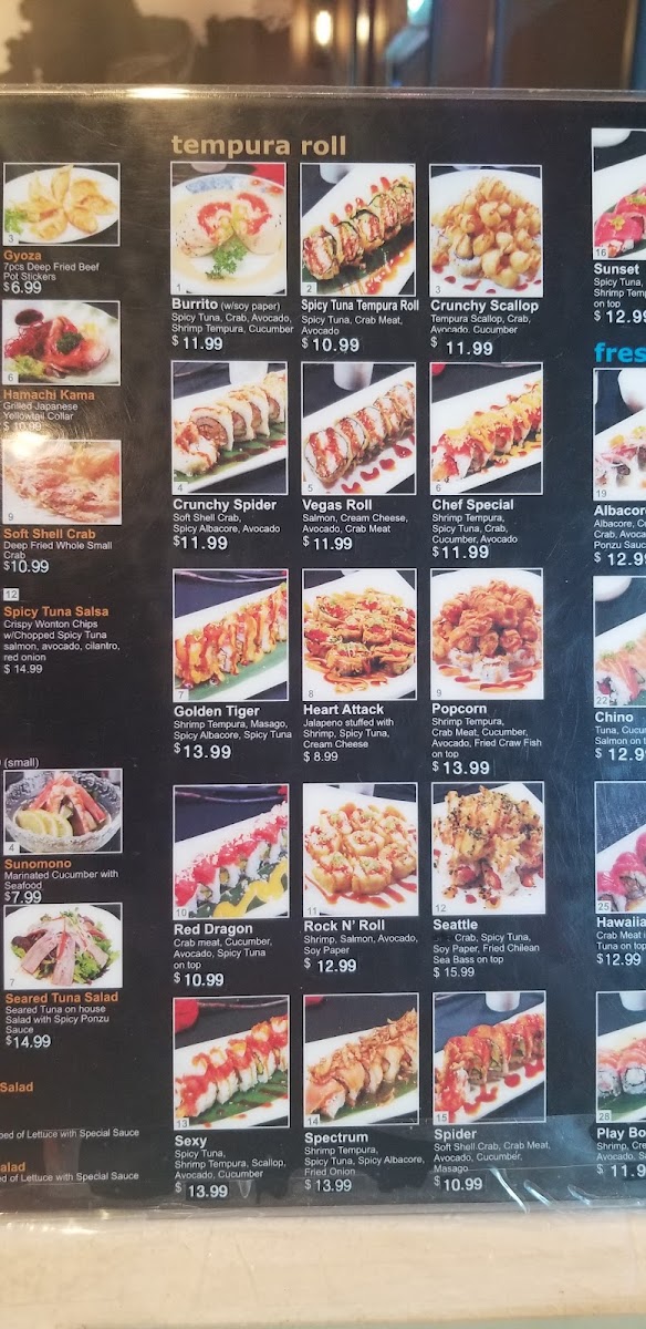 The menu showcases an impressive variety of dishes. For starters, the Albacore Salad features seared albacore drizzled with a spicy ponzu sauce, delivering a balanced flavor that dances on your palate for $19.99. If you're in the mood for something a bit different, the Crab Salad and Spicy Tuna Salad are equally tantalizing. Each dish is crafted with freshness in mind, and you can savor the quality in every bite.